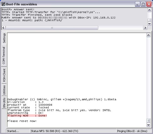 Verbindung nicht OK. Mit der Ausgabe DONE! darf ich Euch aber zum erfolgreichen