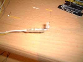 Nun müsst Ihr einen Widerstand an die Anode (Plus-Pol) löten damit