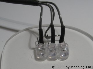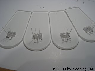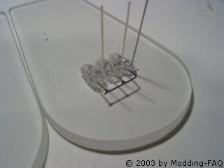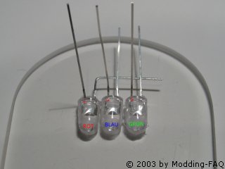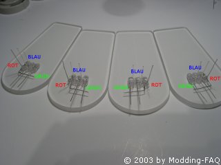 Bevor man die LEDs reinklebt, sollte man den Plus-Pol zu einer Seite abbiegen(nach