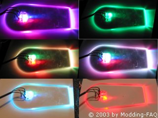 Die Lichtvertelung geschieht am Besten, wenn die LEDs in die Plexi eingelassen/reingebohrt